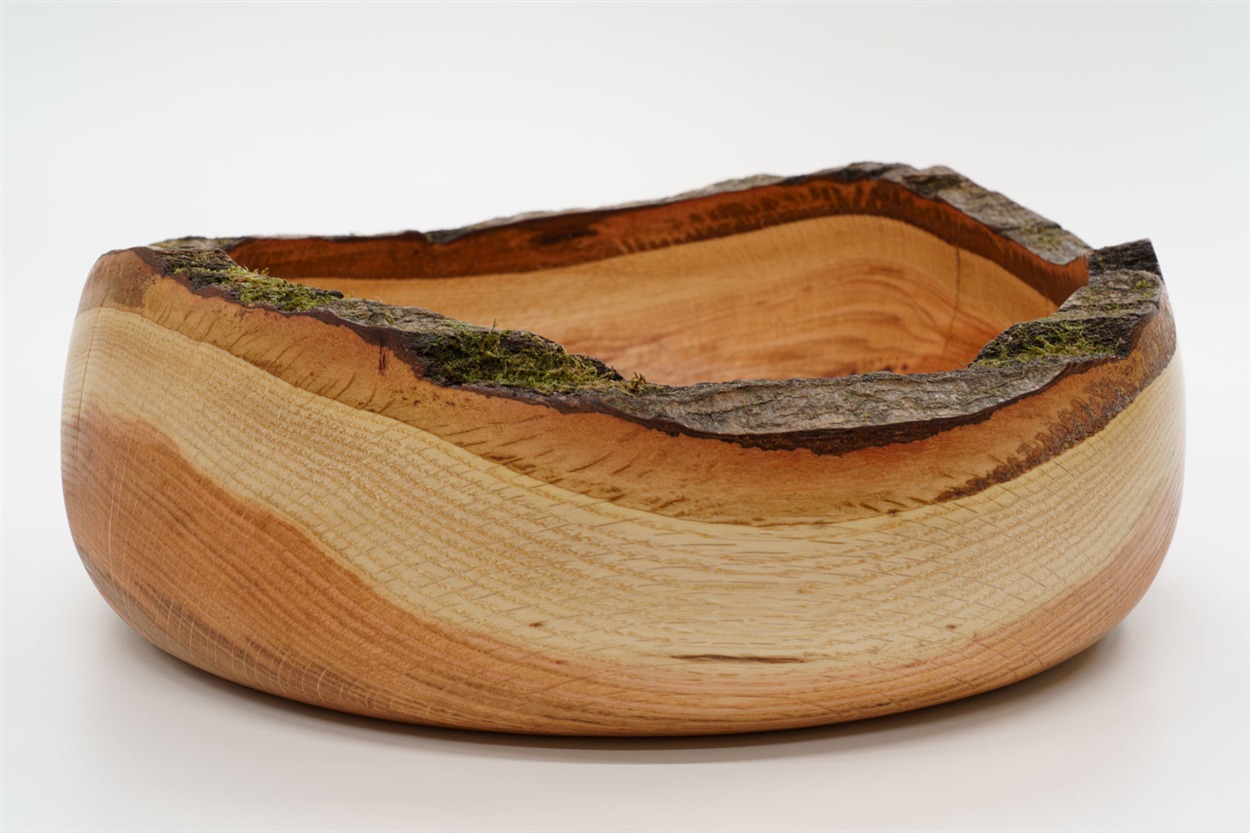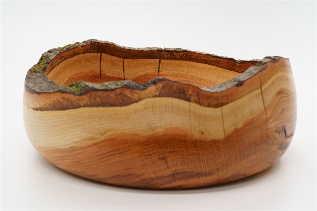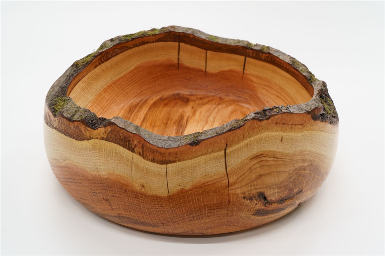 Das im Winter 2025/26 gefällte Eichenholz für dies Schale ist aus dem Buchser Wald. Das Erdstammstück hat eine ganz besondere Färbung.